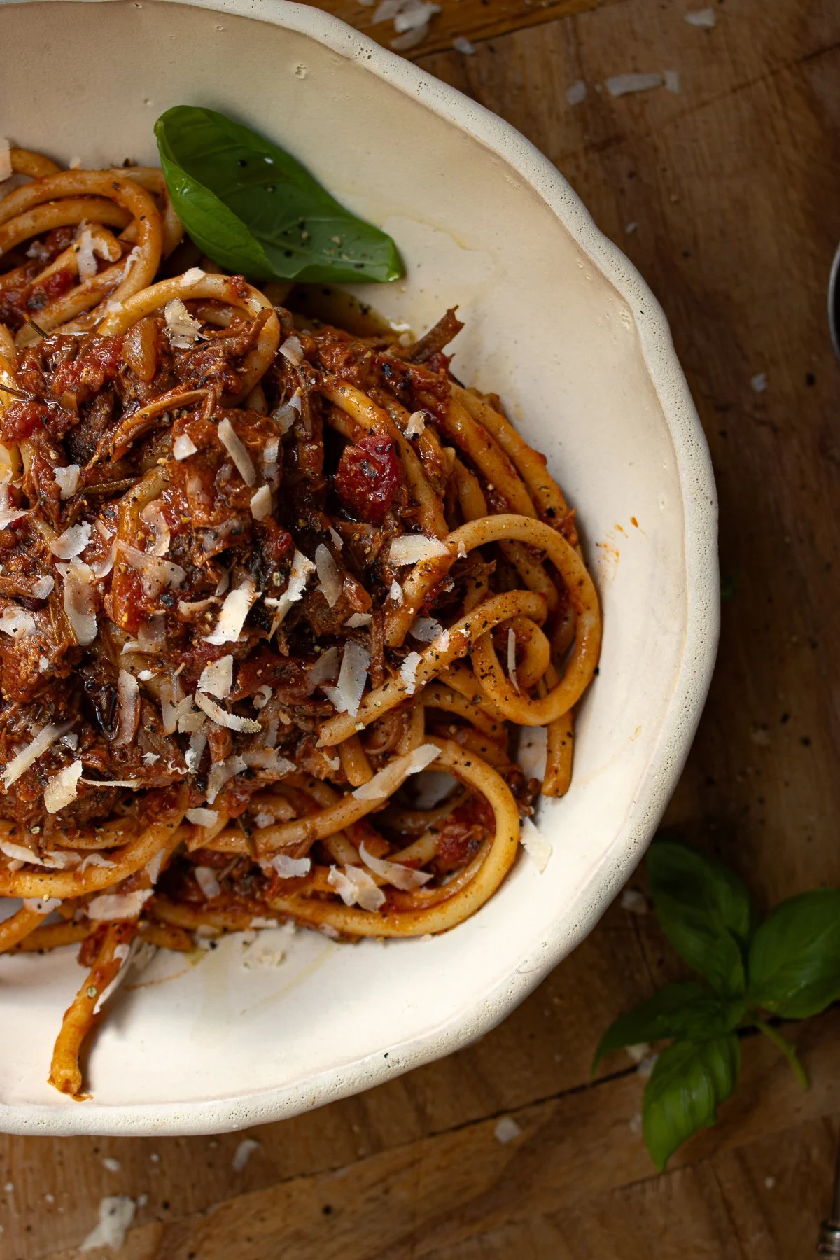 Step 5: Slow Cook to Perfection Reduce the heat to low, add the parmesan ribs and cover the pot. Let the ragù simmer for 3-5 hours, stirring occasionally. The meat should become tender and the sauce rich and thick. If the sauce reduces too much, add a splash of water or stock as needed.